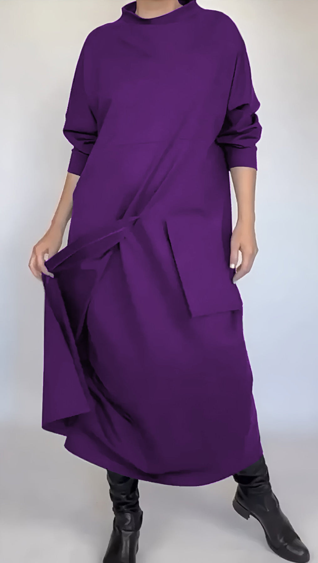 Damska sukienka z okrągłym dekoltem i jedną kieszenią